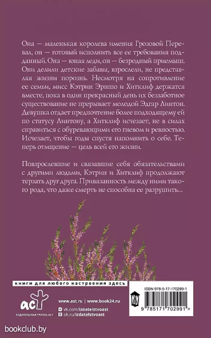 Она — маленькая королева имения Грозовой Перевал, он — готовый исполнить все ее требования подданный. Она — юная леди, он — безродный приемыш. Они делили детские забавы, взрослели, не представляя жизни порознь. Несмотря на сопротивление ее семьи, мисс Кэтрин Эрншо и Хитклиф держатся вместе, пока в один прекрасный день их беззаботное существование не прерывает молодой Эдгар Линтон. Девушка отдает предпочтение более подходящему ей по статусу Линтону, а Хитклиф исчезает, не в силах справиться с обуревающими его гневом и ревностью. Исчезает, чтобы годы спустя напомнить о себе. Теперь отмщение — цель всей его жизни. Повзрослевшие и связавшие себя обязательствами с другими людьми, Кэтрин и Хитклиф продолжают терзать друг друга. Привязанность между ними такого рода, что даже смерть не способна ее разрушить…
