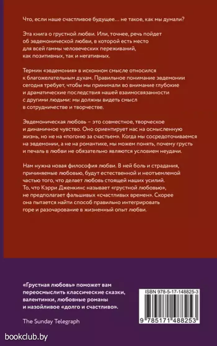 Что, если наше счастливое будущее… не такое, как мы думали? Эта книга о грустной любви. Или, точнее, речь пойдет об эвдемонической любви, в которой есть место для всей гаммы человеческих переживаний, как позитивных, так и негативных.
