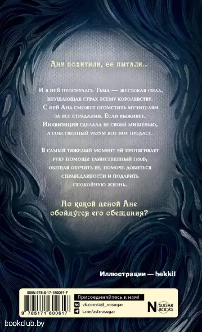 Ану похитили, ее пытали… И в ней проснулась Тьма — жестокая сила, внушающая страх всему королевству. С ней Ана сможет отомстить мучителям за все страдания. Если выживет. Инквизиция сделала ее своей мишенью, а собственный разум вот-вот предаст. В самый тяжелый момент ей протягивает руку помощи таинственный граф, обещая обучить ее, помочь добиться справедливости и подарить спокойную жизнь. Но какой ценой Ане обойдутся его обещания?