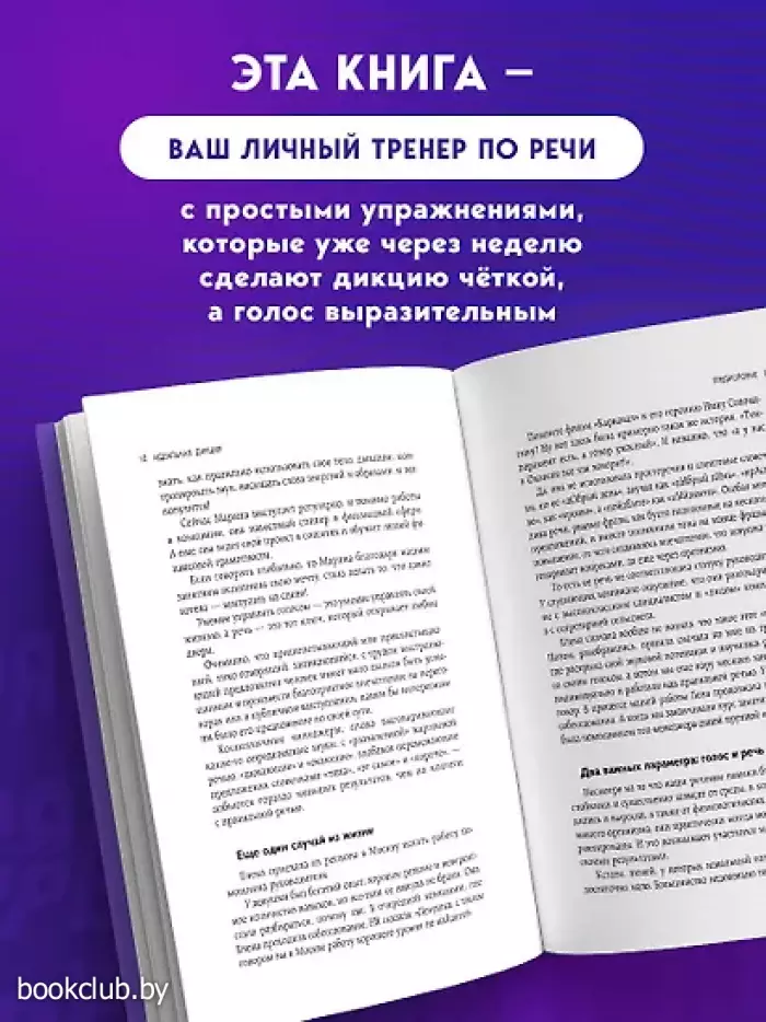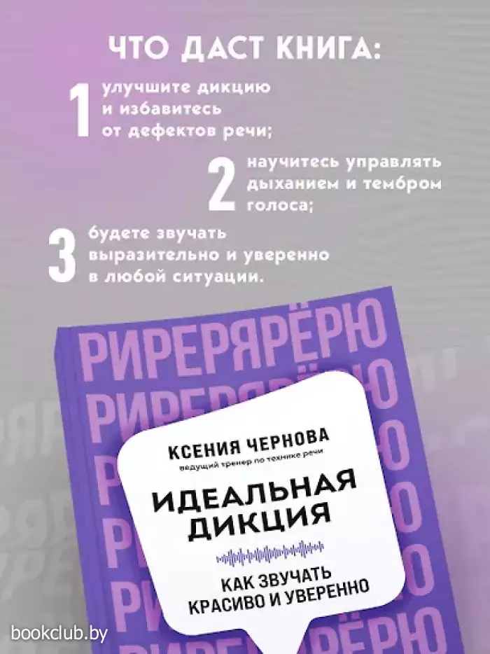 «Ри — ре — ря — рё — рю. Ул — ол — ал — эл — ил — ыл. Чегоооо? Бред какой-то!» Да, именно так может показаться, когда впервые слышишь упражнения для красивой речи. Но попробуйте выполнять хотя бы одно из них каждое утро в течение недели, и вы не поверите, как изменятся ваши дикция и звучание! Все эти смешные и странные на первый взгляд практики сделают голос мягким, бархатистым, завораживающим, убедительным, а дикцию — безупречной, что точно повысит вашу самооценку и усилят харизму. Тренируясь с этой книгой, вы: - научитесь говорить внятно и грамотно; - получите набор готовых скороговорок для дикции; - избавитесь от говора и дефектов речи; - сможете изменить тембр голоса; - научитесь контролировать дыхание и не сбиваться во время выступлений. «Я поражена, как изменился мой голос после первого занятия с Ксенией! Я стала следить за речью и зазвучала по-новому. Советую всем, особенно руководителям, прочитать эту книгу и использовать ее в ежедневной рутине. Потому что как ты говоришь, так тебя и воспринимают окружающие». — Азиза Иргашева, креативный продюсер медиагруппы «Красный квадрат» «Это один из лучших наборов упражнений, которые я использую, чтобы выразительно звучать в кадре. Если вы хотите уметь управлять своим голосом, вам точно нужна эта книга». — Владимир Бутенко, популярный актер театра и кино Книга «Идеальная дикция. Как звучать красиво и уверенно» - правильный выбор и отличное приобретение. Для вашего удобства при оформлении заказа по телефону назовите код товара: 417086