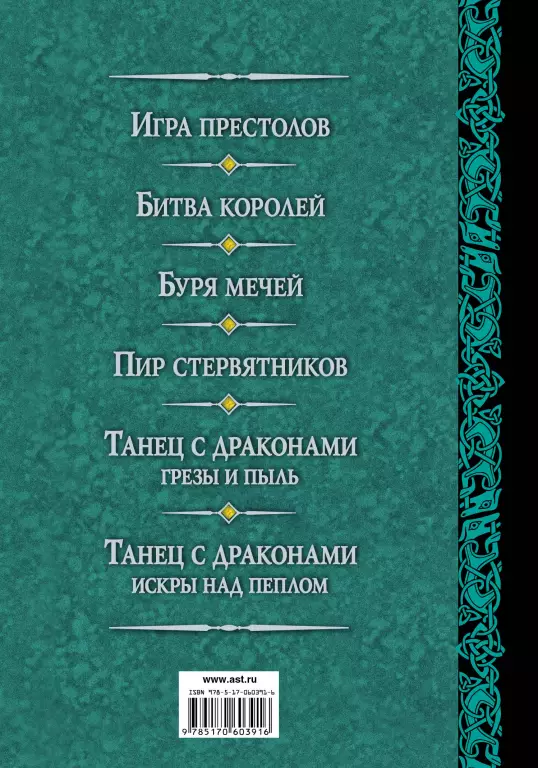 Знаменитая эпическая сага «Песнь льда и огня» о мире Семи Королевств.