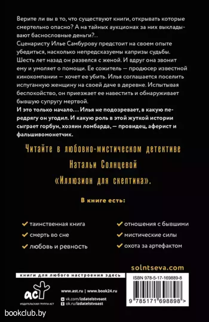 Книги издательства «АСТ» из серии «Все совпадения не случайны. Романы Натальи Солнцевой» станут прекрасным дополнением вашей библиотеки. Для вашего удобства при оформлении заказа по телефону назовите код товара: 411942
