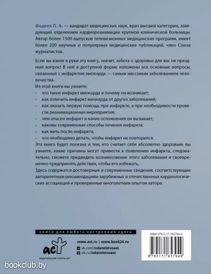 Читатель узнает, что такое инфаркт миокарда и почему он возникает; как отличить инфаркт миокарда от других заболеваний; как оказать первую помощь при инфаркте; чем опасен инфаркт; каковы современные способы лечения; как жить после инфаркта.