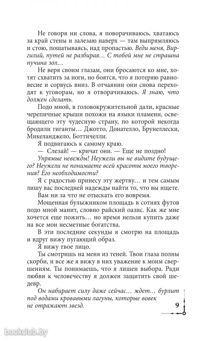 Оказавшись во Флоренции, профессор Лэнгдон, специалист по кодам, символам и истории искусства, попадает в водоворот событий, которые способны привести к гибели человечества... Помешать этому может только разгадка тайны, зашифрованной Данте в строках своей бессмертной поэмы.