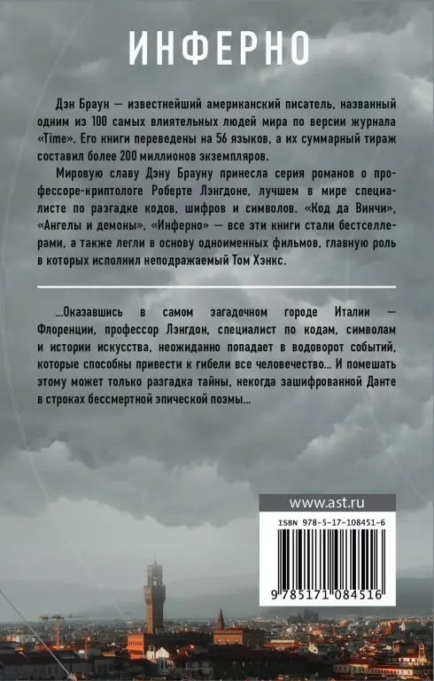 Книги издательства «АСТ» из серии «Читаем Дэна Брауна!» станут прекрасным дополнением вашей библиотеки. Для вашего удобства при оформлении заказа по телефону назовите код товара: 113872