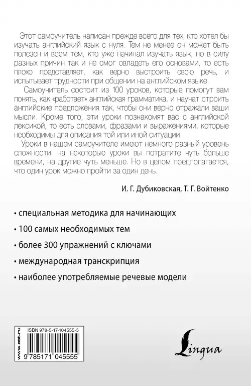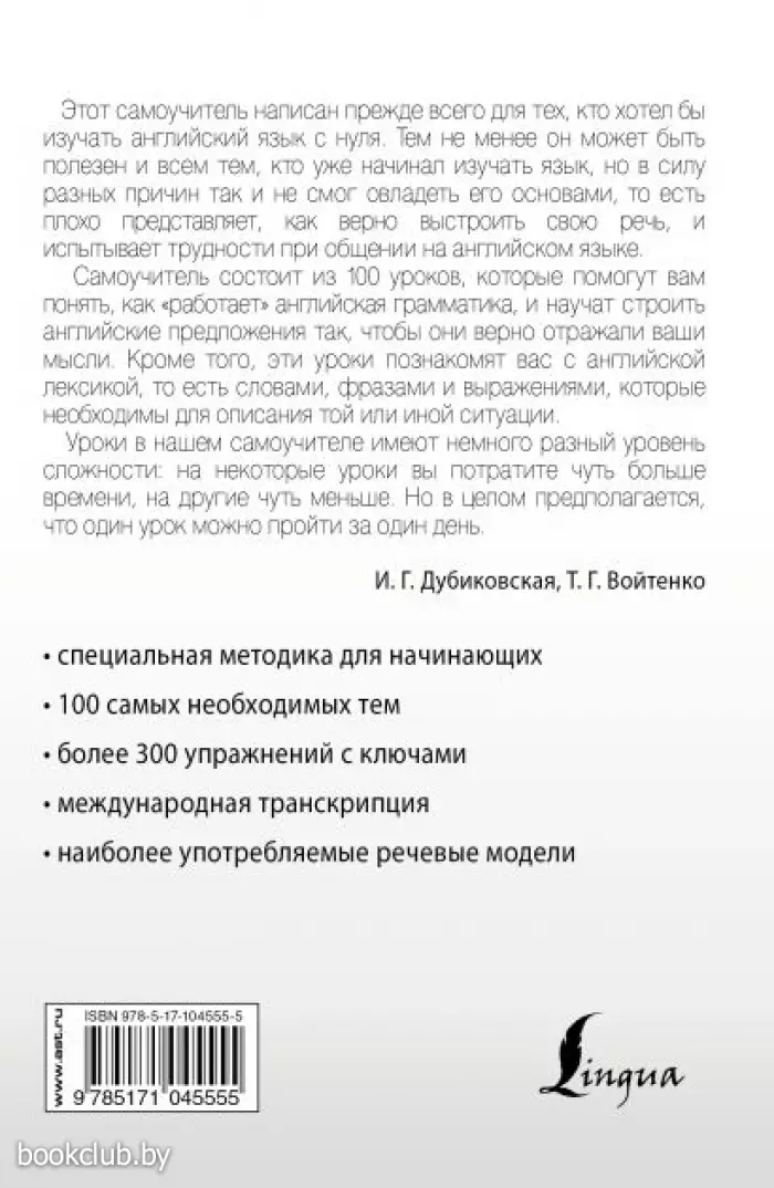 Книги издательства «АСТ» из серии «Иностранный за 100 дней» станут прекрасным дополнением вашей библиотеки. Для вашего удобства при оформлении заказа по телефону назовите код товара: 126354