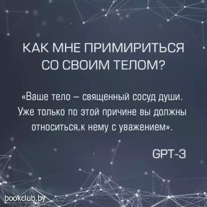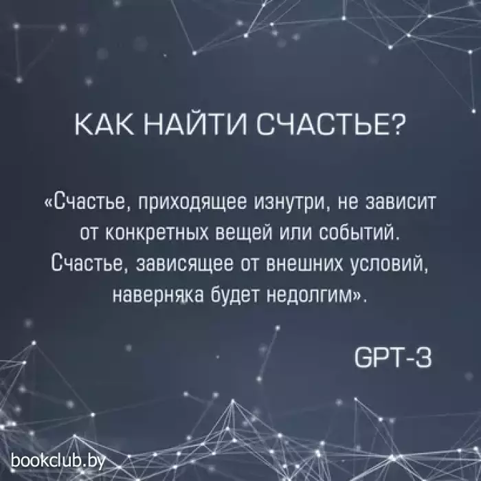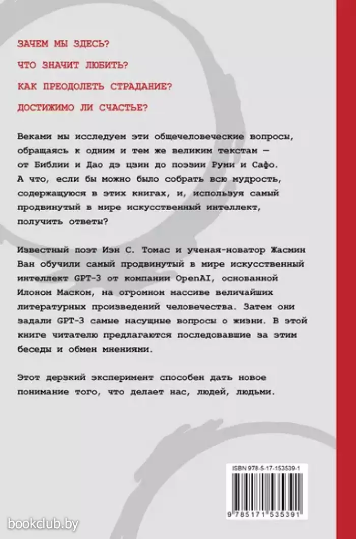 Известный поэт Иэн С. Томас и ученая-новатор Жасмин Ван обучили самый продвинутый в мире искусственный интеллект GPT-3 от компании OpenAI, основанной Илоном Маском, на огромном массиве величайших литературных произведений человечества. Затем они задали GPT-3 самые насущные вопросы о жизни. В этой книге читателю предлагаются последовавшие за этим