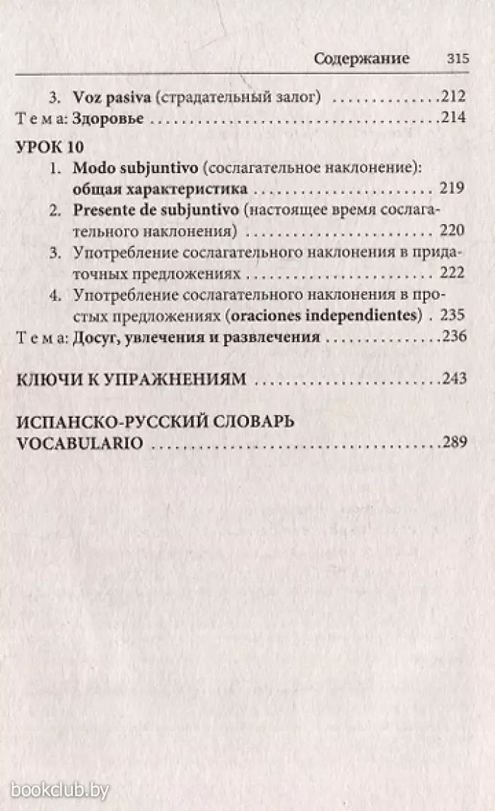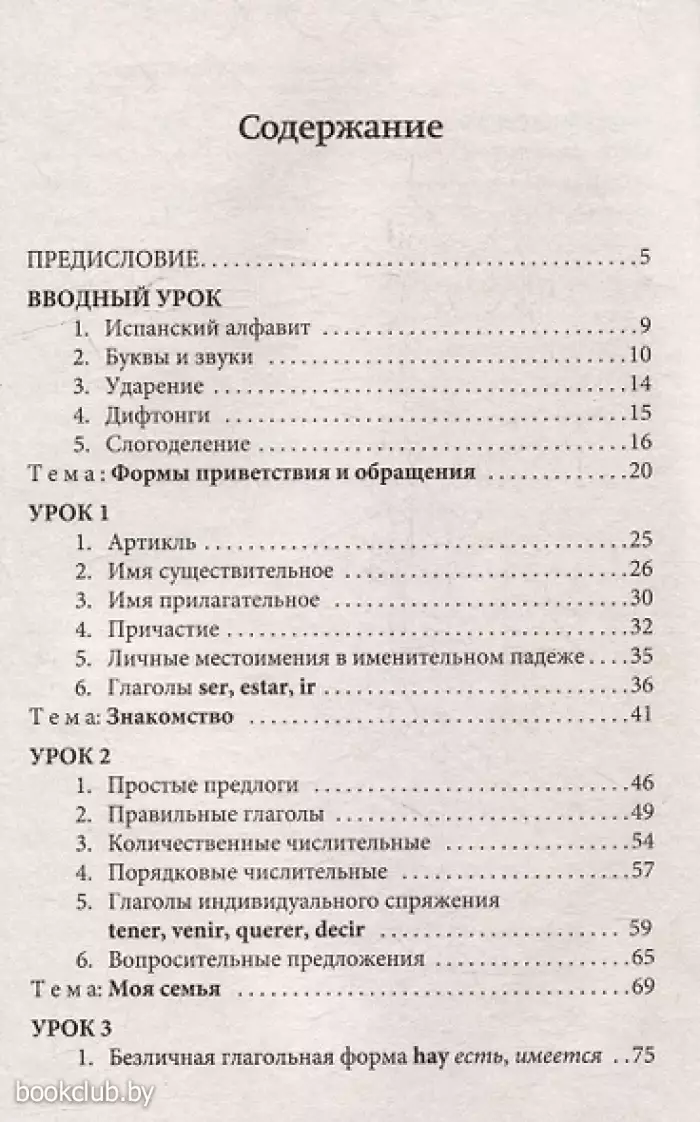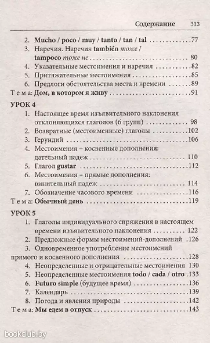 Самоучитель поможет в краткий срок овладеть лексическим и грамматическим минимумом начального уровня и простыми формами разговорной речи. Материал курса разбит на 10 уроков, в которых представлены основные темы грамматики и полезная лексика, необходимая в повседневном общении. Для отработки практических навыков предлагается большое количество упражнений с ответами. Все тексты и диалоги даются с параллельным переводом на русский язык, в конце книги также помещен испанско-русский словарь.