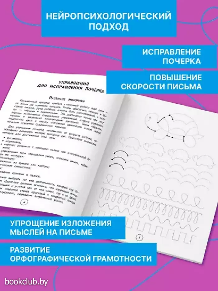 Нейротетрадь по исправлению почерка предназначена для учеников 3 и 4 классов. Верное написание букв и правильное их соединение приводит к уменьшению количества ошибок на письме. Чистописание способствует развитию устной речи, памяти и интеллекта, потому что при письме активизируются соответствующие области мозга. Помимо этого, красивый и чёткий почерк улучшает внимание, мелкую моторику, координацию движений и глазомер. Уникальные задания по каллиграфии позволят ученикам начальной школы не только значительно улучшить почерк, но и повысить скорость письма, что очень важно в учебном процессе.