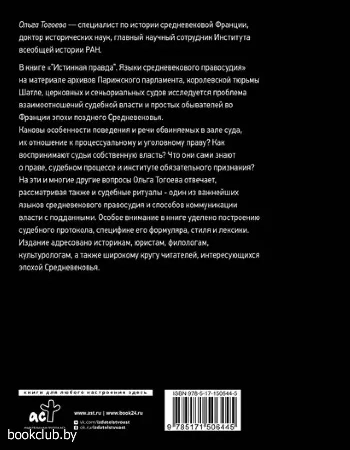 «Истинная правда. Языки средневекового правосудия» – книга, в которой суд рассматривается не как государственный институт, но как место встречи представителей власти с ее подданными. Главной таким образом становится проблема коммуникации, контакта этих двух сил, их способность говорить друг с другом, обмениваться информацией.