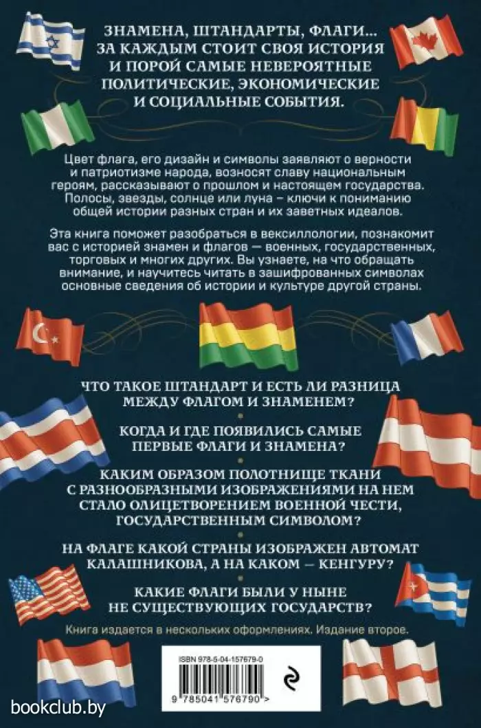 Флаги не просто идентифицируют страны и группы людей. В каждом цвете, символе и дизайне граждане и правительства стран заявляют о своей верности, патриотизме и возносят свою историю. В полосах, звездах, солнце, луне и разных цветах флагов мира скрываются ключи к пониманию общей истории разных стран и их заветных идеалов. Благодаря этой книге вы узнаете, на что обращать внимание, и научитесь читать в зашифрованных символах основные сведения об истории и культуре другой страны. Появление некоторых государственных флагов связывают с историями о доблести и победах: например, именно таково происхождение флага Австрии. Согласно легенде, во время одного из крестовых походов австрийский герцог Леопольд V после битвы был покрыт кровью — и своей, и вражеской — с головы до ног. Его белые доспехи превратились в алые. Но когда он снял пояс, оказалось, что под ним осталась белая, не запятнанная кровью полоса. Воину показалось, что такое сочетание цветов как нельзя лучше отражает идею воинской чести и смелости, и он приказал сделать свой личный штандарт именно таким: красным с белой полосой. Впоследствии эта расцветка была использована при разработке государственного флага.