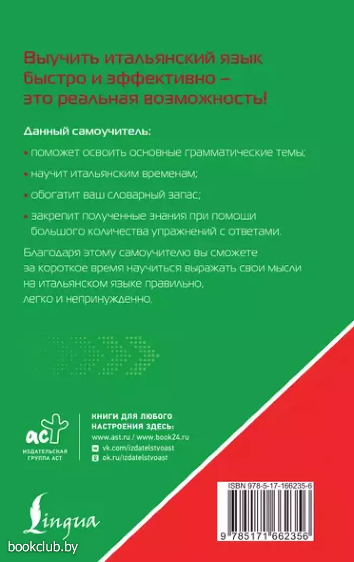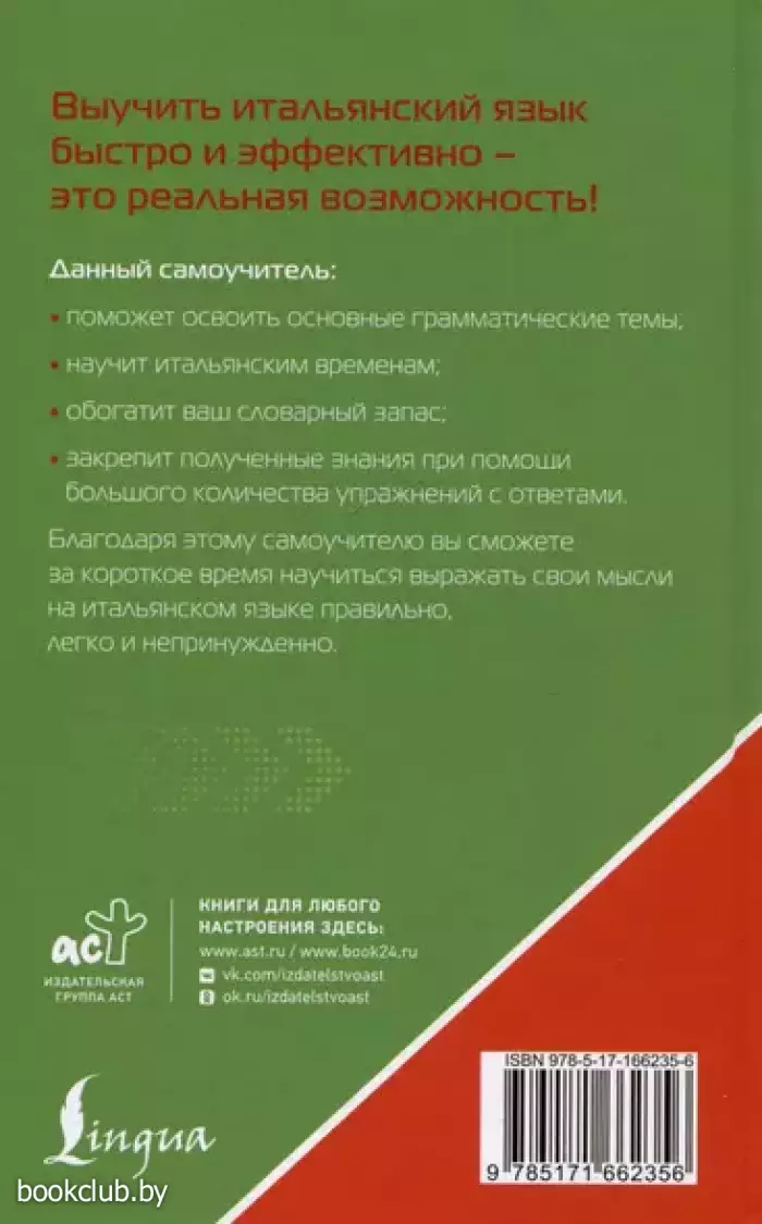 Базовый объём грамматики и лексики, а также большое количество упражнений и полезных приложений позволят легко и быстро выучить итальянский язык.