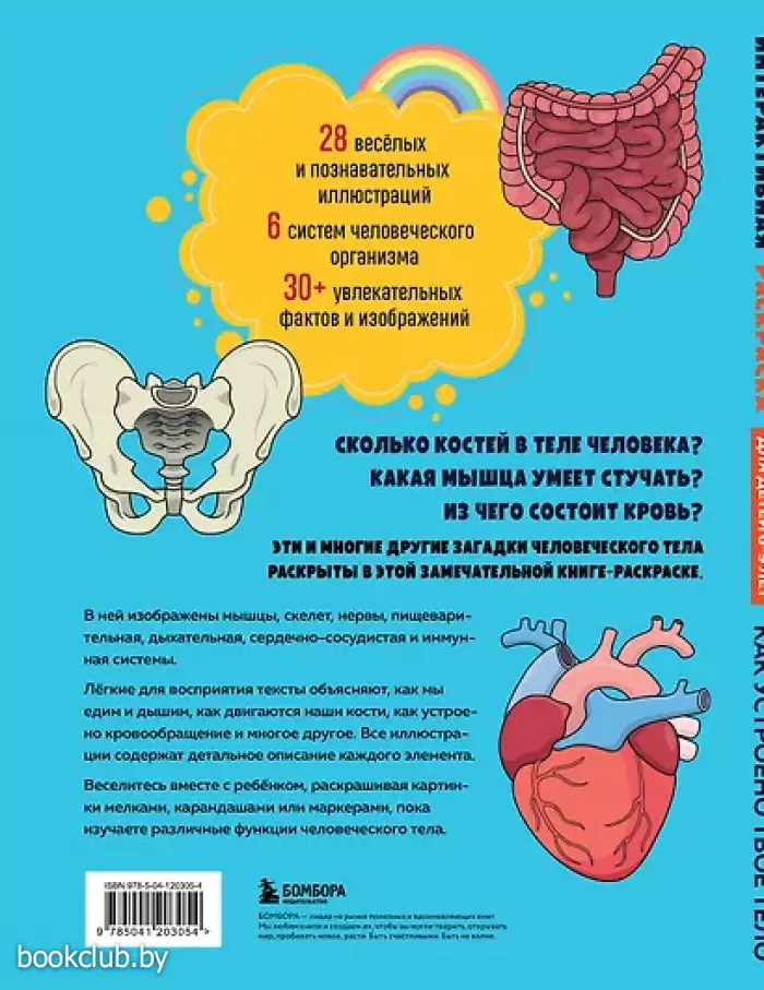 Вот самый увлекательный для детей способ узнать, как устроено человеческое тело: 28 веселых и поучительных иллюстраций для раскрашивания, благодаря которым они исследуют мышечную, скелетную, нервную, пищеварительную, дыхательную и иммунную системы. Дети узнают, как работает их голосовой аппарат, сколько у них костей, как тысячи «рецепторов» на языке помогают им различать вкусы, чем ДНК в их клетках отличается от ДНК всех остальных людей и многое другое. Это захватывающее путешествие по телу с ног до головы наполнено удивительными деталями и интересно для чтения… а ещё увлекательно для раскрашивания!