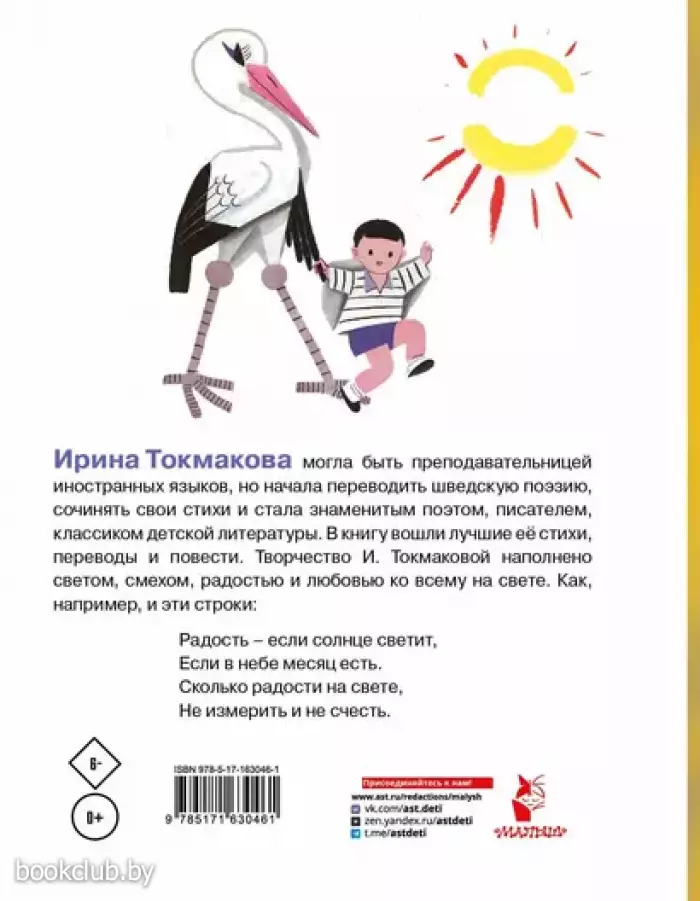 Ирина Токмакова могла быть преподавательницей иностранных языков, но начала переводить шведскую поэзию, сочинять свои стихи и стала знаменитым поэтом, писателем, классиком детской литературы. В книгу вошли лучшие её стихи, переводы и повести. Творчество И. Токмаковой наполнено светом, смехом, радостью и любовью ко всему на свете. Как, например, и эти строки: