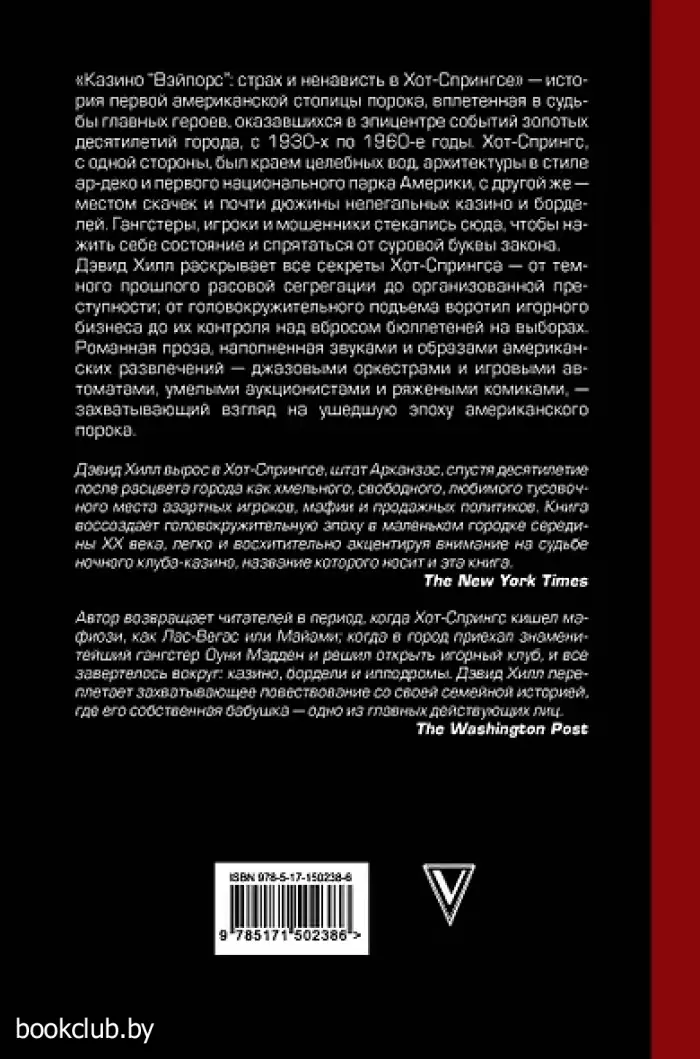 Перед читателем – история одной из самых бурных эпох в истории Америки, увиденная через призму казино «Вэйпорс». Организованная преступность, тяжелое расовое прошлое, белые гангстеры и растущий при их поддержке черный средний класс – книга рассказывает о том, как грязная изнанка Юга также стала местом, где появились первые больницы для ветеранов и бейсбольные площадки, давшие дорогу легенде бейсбола Бейбу Руту и президенту Биллу Клинтону. Переполненное джазовыми артистами, аукционистами, игровыми автоматами и костюмированными комиками, казино «Вэйпорс» – это окно в мир старой Америки с ее неповторимым духом.