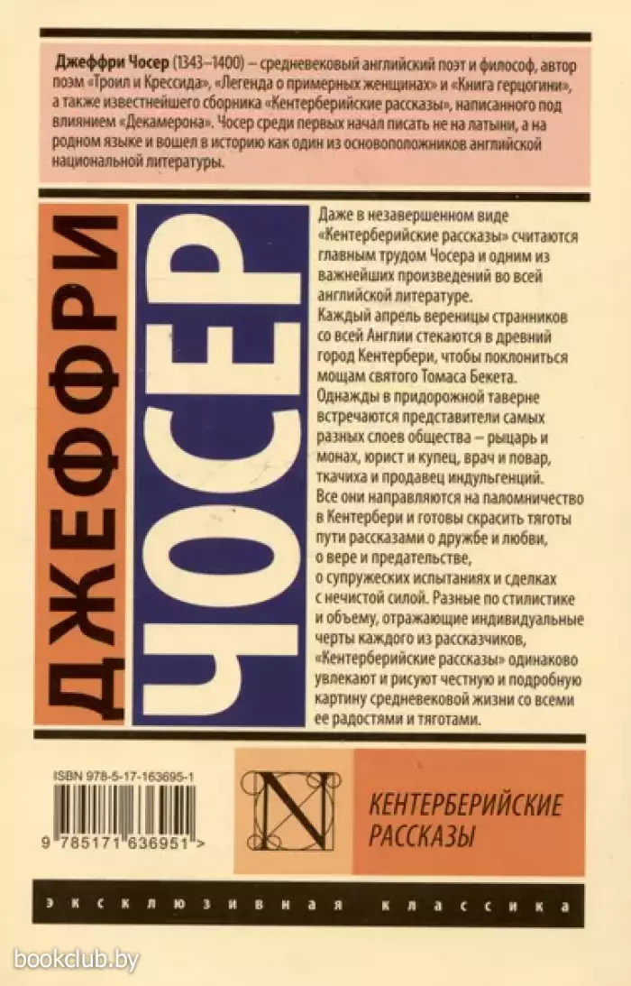 Даже в незавершенном виде «Кентерберийские рассказы» считаются главным трудом Чосера и одним из важнейших произведений во всей английской литературе. Каждый апрель вереницы странников со всей Англии стекаются в древний город Кентербери, чтобы поклониться мощам святого Томаса Бекета. Однажды в придорожной таверне встречаются представители самых разных слоев общества — рыцарь и монах, юрист и купец, врач и повар, ткачиха и продавец индульгенций. Все они направляются на паломничество в Кентербери и готовы скрасить тяготы пути рассказами о дружбе и любви, о вере и предательстве, о супружеских испытаниях и сделках с нечистой силой. Разные по стилистике и объему, отражающие индивидуальные черты каждого из рассказчиков, «Кентерберийские рассказы» одинаково увлекают и рисуют честную и подробную картину средневековой жизни со всеми ее радостями и тяготами.