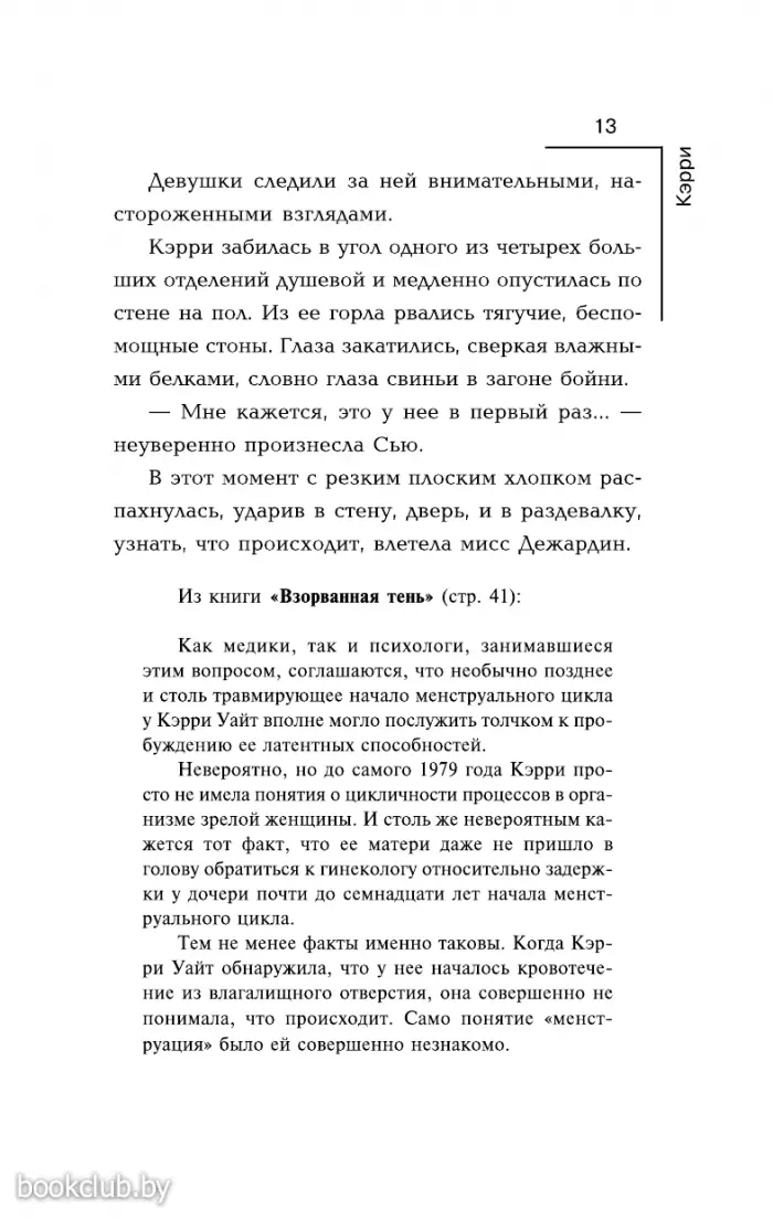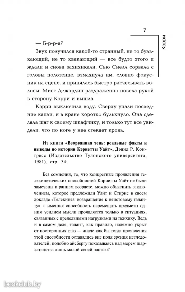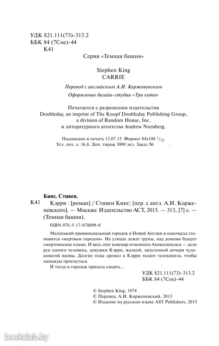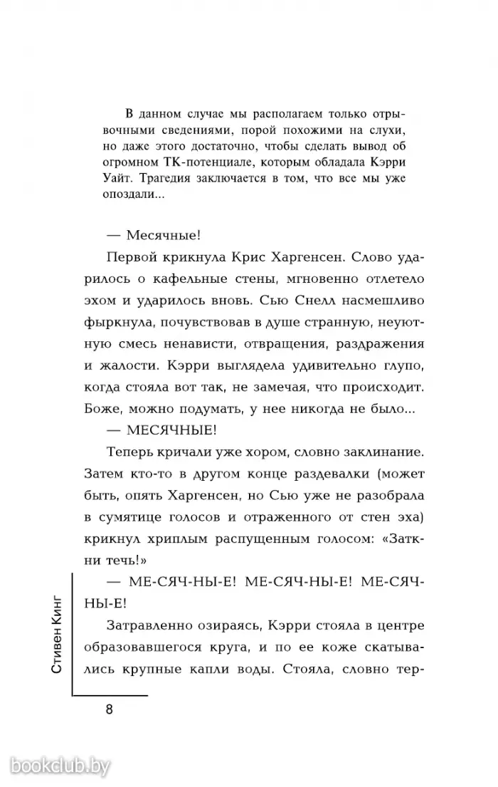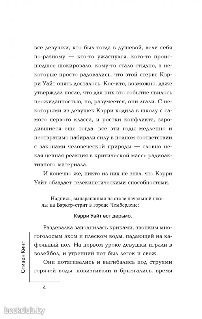 Роман, после публикации которого Стивен Кинг проснулся знаменитым. История затравленной одноклассниками, забитой матерью девушки из маленького городка Касл-Рок. Девушки, в которой дремлет чудовищный по силе дар телекинеза. Роман «Кэрри» не раз становился основой кинофильмов...