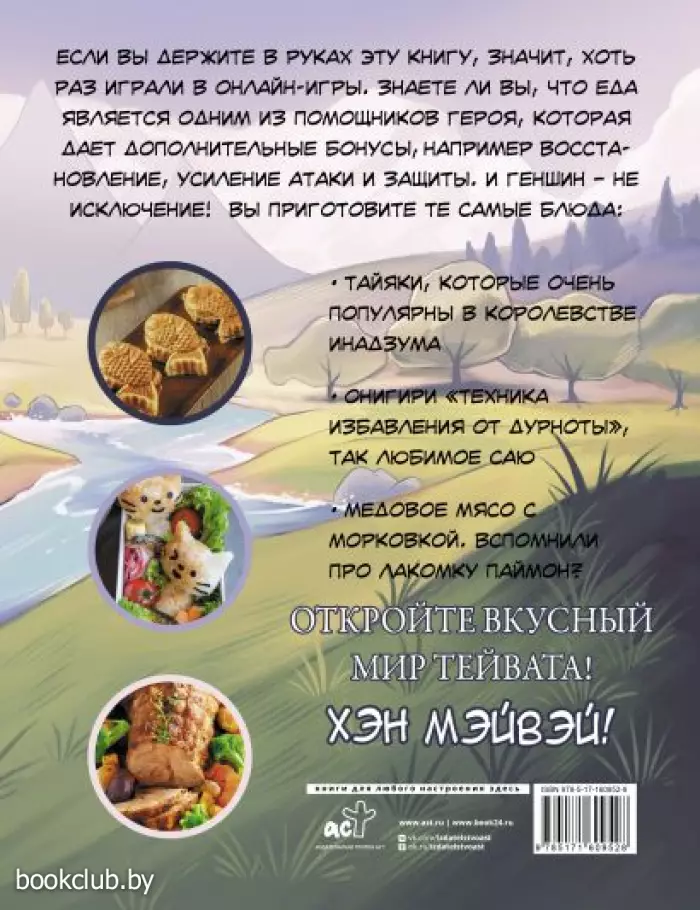 Не можете жить без онлайн-игр? Тогда держите кулинарную книгу, созданную по удивительным мирам Тейвата! Книга Ян Джун «Хэн мэйвэй! Еда из мира Тейвата. Неофициальное издание для фанатов Геншина» подарит вам полное погружение во вселенную популярной онлайн-игры. Почувствуйте себя на одной волне с любимыми героями – приготовьте необычные блюда по причудливым рецептам и поднимите настроение себе и процент выносливости вашим персонажам. Вас ждут невероятные рецепты супов, суши, салатов, мяса и закусок из мира Тейвата: сочный стейк, который можно купить у повара Брук, способный воскресить героя; рыбный шашлык для восстановления здоровья, который обожает Диона; мясные голубцы с грибами, которые подают на постоялом дворе «Ваншу»; «Деликатесы скалистой гавани», символизирующие благоухание земли, прохладу тени и влажность тумана, и праздничный сок, способный вылечить целый отряд. Не нужно быть профессиональным поваром – благодаря пошаговым инструкциям приготовить блюда сможет даже новичок, а аппетитные фотографии, яркие иллюстрации и поэтические описания и названия блюд окутают вас атмосферой миров Тейвата. Совершайте свои кулинарные открытия с книгой Ян Джун «Хэн мэйвэй! Еда из мира Тейвата».