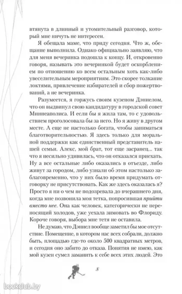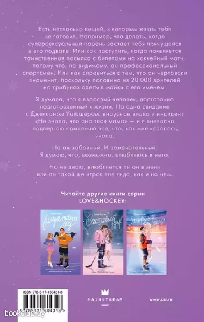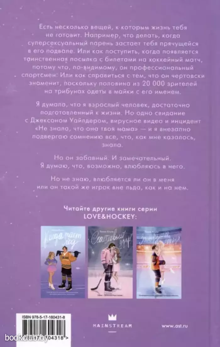 Есть несколько вещей, к которым жизнь тебя не готовит. Например, что делать, когда суперсексуальный парень застает тебя прячущейся в его подвале. Или как поступить, когда появляется таинственная посылка с билетами на хоккейный матч, потому что, по-видимому, он профессиональный спортсмен. Или как справиться с тем, что он чертовски знаменит, поскольку половина из 20 000 зрителей на трибунах одеты в майки с его именем. Я думала, что я взрослый человек, достаточно подготовленный к жизни. Но одно свидание с Джексоном Уайлдером, вирусное видео и инцидент “Я не знала, что она твоя мама”, и я внезапно подвергаю сомнению все, что, как мне казалось, знала. Но он забавный. И замечательный. И я думаю, что, возможно, влюбляюсь в него. Но я не знаю, влюбляется ли он в меня, или он такой же игрок вне льда, как и на нем.
