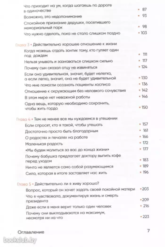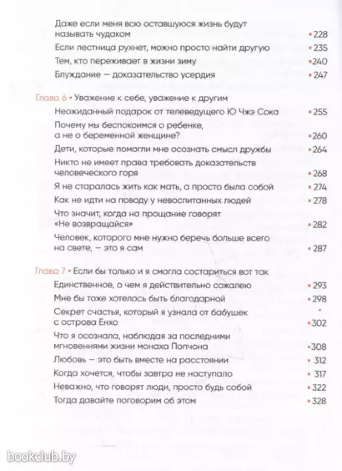 Здесь собраны истории, которыми Джи Хён бы хотела поделиться с людьми, желающими прожить свою жизнь без сожалений. Так, в книге можно найти ответы на вопросы: «Какое отношение к жизни нужно иметь, чтобы жить полноценно?», «Что в конечном счете дает нам силы жить?», «Как встретить свою старость?» и др.