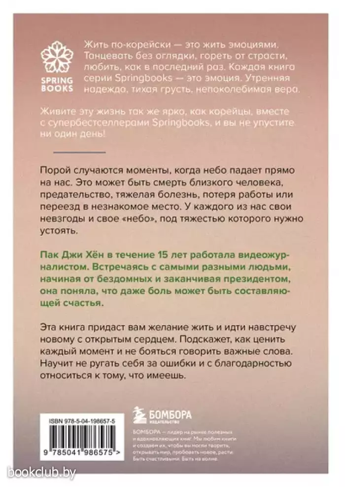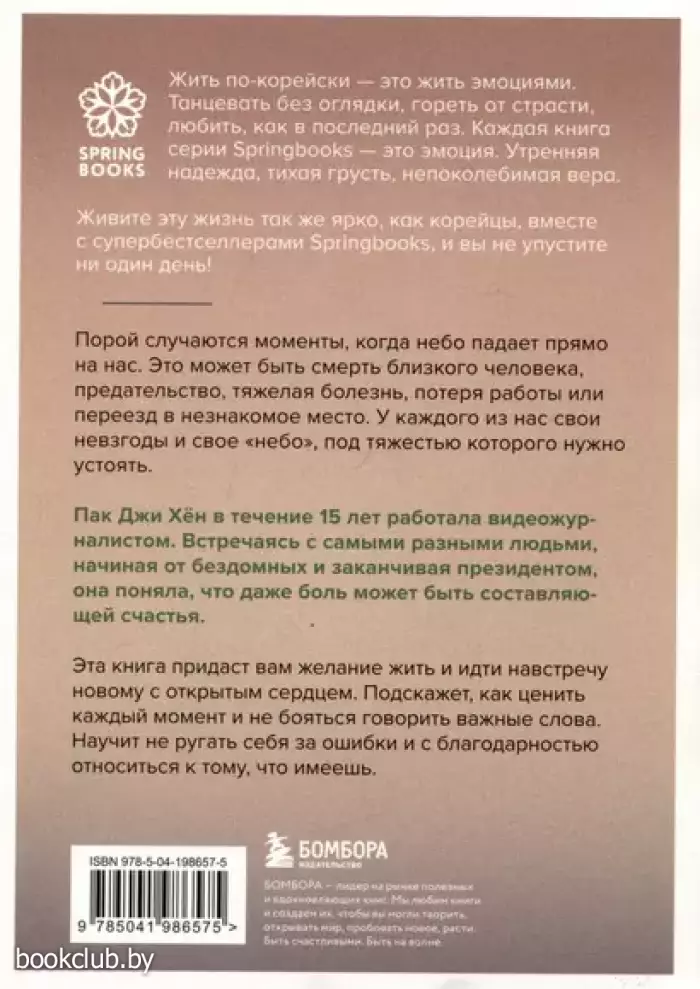 Книги издательства «ЭКСМО» из серии «Springbooks. Корейские бестселлеры» станут прекрасным дополнением вашей библиотеки. Для вашего удобства при оформлении заказа по телефону назовите код товара: 406043