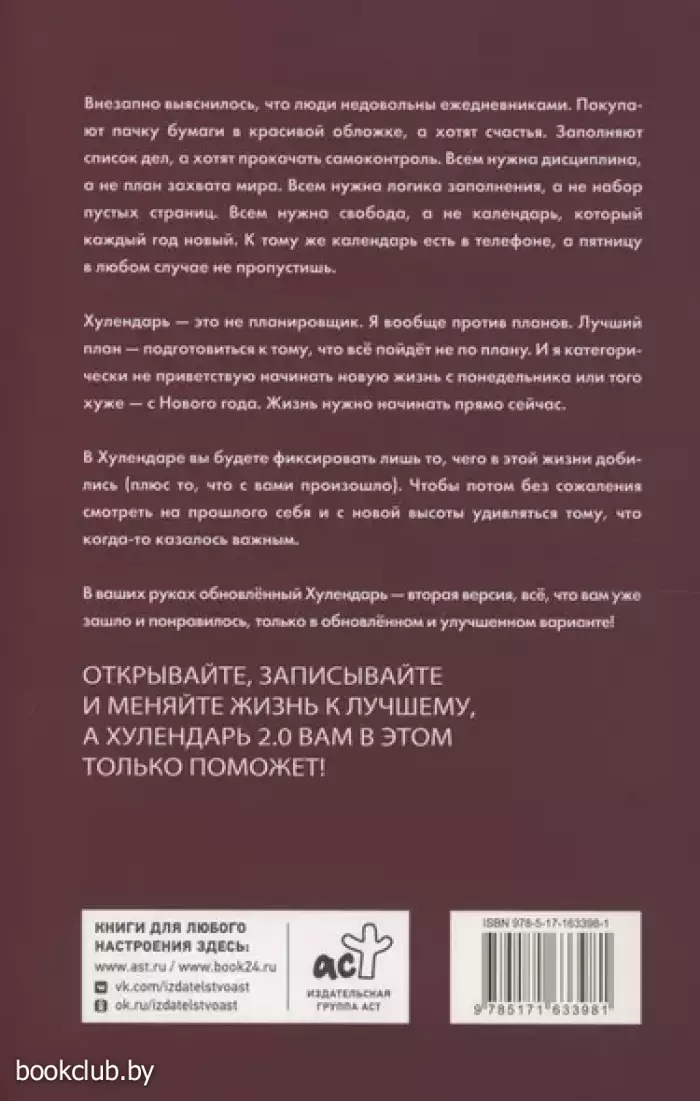 Хулендарь — это не планировщик. Я вообще против планов. Лучший план — подготовиться к тому, что всё пойдёт не по плану. И я категорически не приветствую начинать новую жизнь с понедельника или того хуже — с Нового года. Жизнь нужно начинать прямо сейчас.