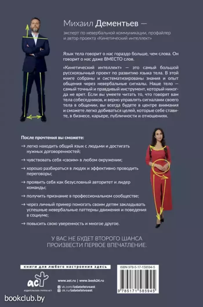 «Кинетический интеллект» — это самый большой русскоязычный проект по развитию языка тела. В этой книге собраны и систематизированы знания и опыт общения через невербальные сигналы. Наше тело, — самый точный и правдивый инструмент, который никогда не врет. Если вы умеете читать то, что говорят вам тела собеседников, и верно управлять сигналами своего тела в общении, вы всегда будете в центре внимания и сможете легко добиваться целей, которые себе ставите, в бизнесе, карьере, публичности и отношениях.