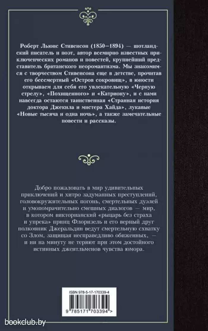 Добро пожаловать в мир удивительных приключений и хитро задуманных преступлений, головокружительных погонь, смертельных дуэлей и умопомрачительно смешных диалогов, – мир, в котором викторианский «рыцарь без страха и упрека» принц Флоризель и его верный друг полковник Джеральдин ведут смертельную схватку со Злом, защищая несправедливо обиженных, – и ни на минуту не теряют при этом достойного истинных джентльменов чувства юмора.