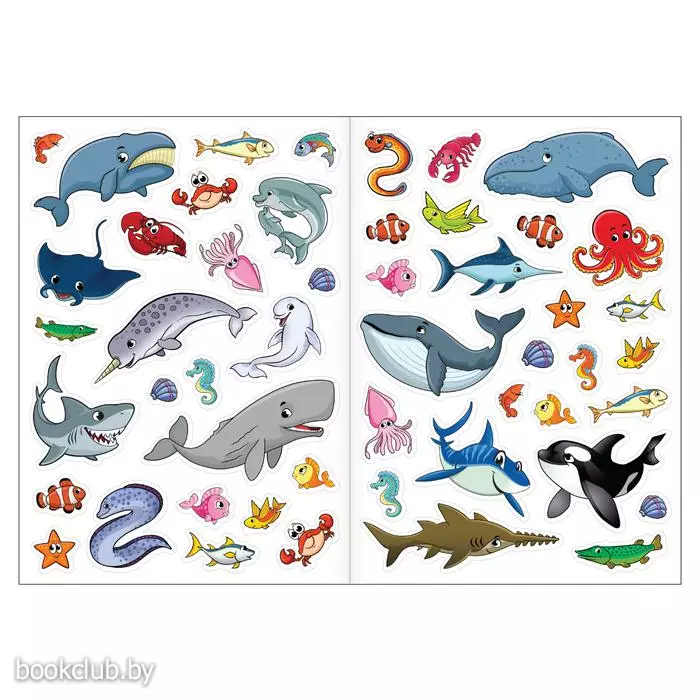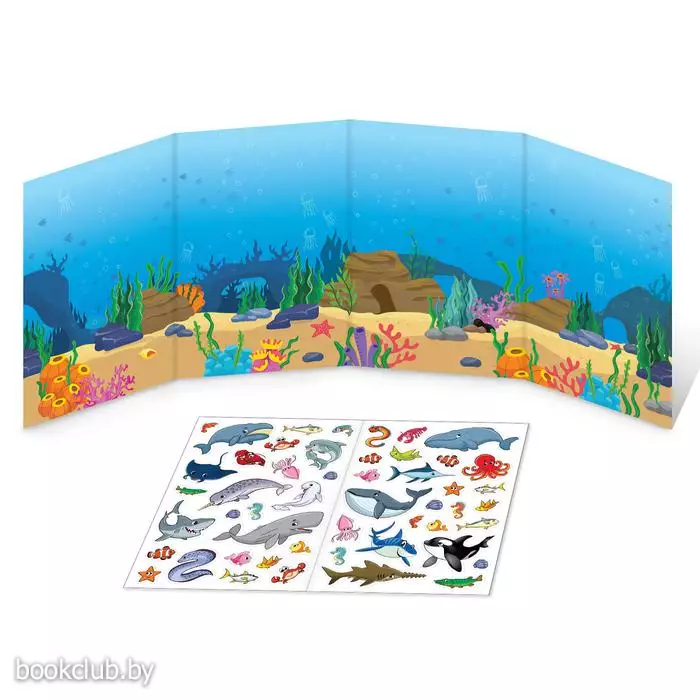 Книга-панорама с многоразовыми наклейками «Кто живет в море»