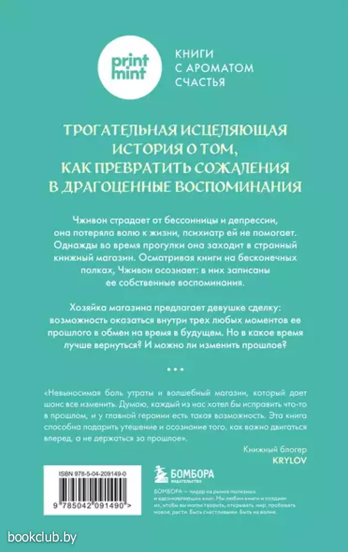 «Своей историей я хотела бы выразить искреннее сочувствие утрате, которая может постичь любого из нас, и протянуть руку дружбы, теплую, как температура человеческого тела. Я лишь хочу сказать, что также, как ""Книжный магазин воспоминаний"" чудом явился однажды к ничего из себя не представляющей мне, так и тебя непременно отыщет твой собственный магазин воспоминаний. И наша встреча на этих страницах тому доказательство». — Сон Ючжон