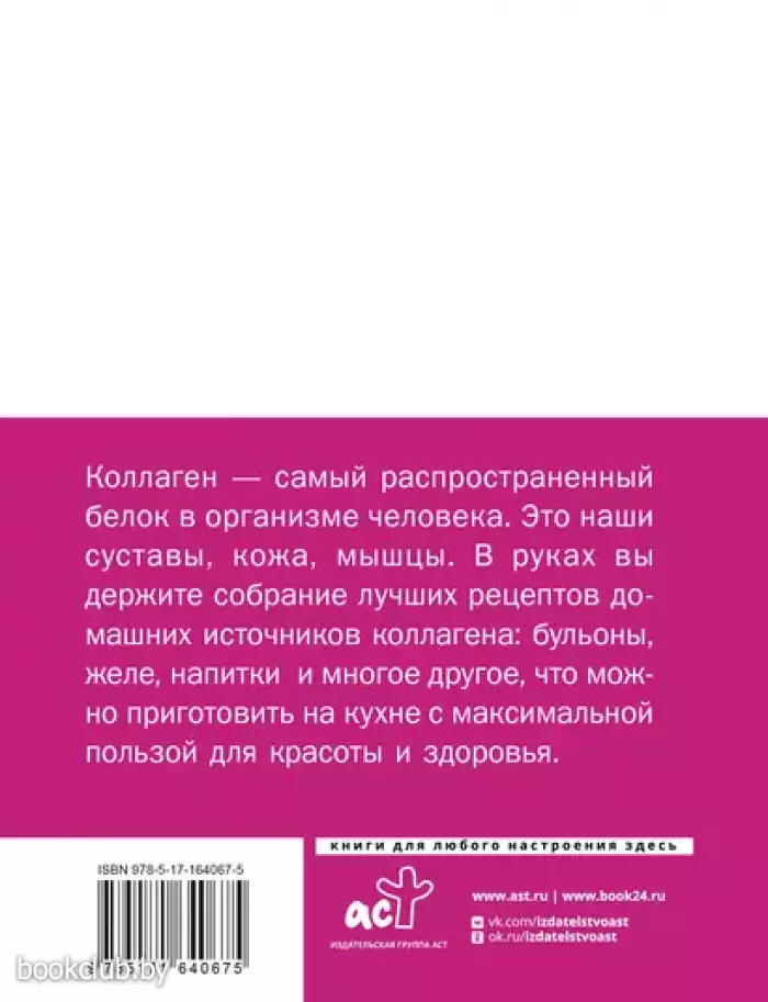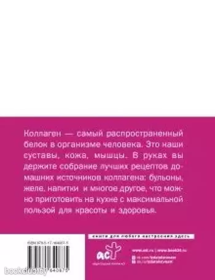В руках вы держите собрание лучших рецептов домашних источников коллагена: бульоны, желе, напитки и многое другое. Все, что можно приготовить на кухне с максимальной пользой для красоты и здоровья, будучи уверенным в качестве используемых продуктов и - как результат - пользе таких блюд.