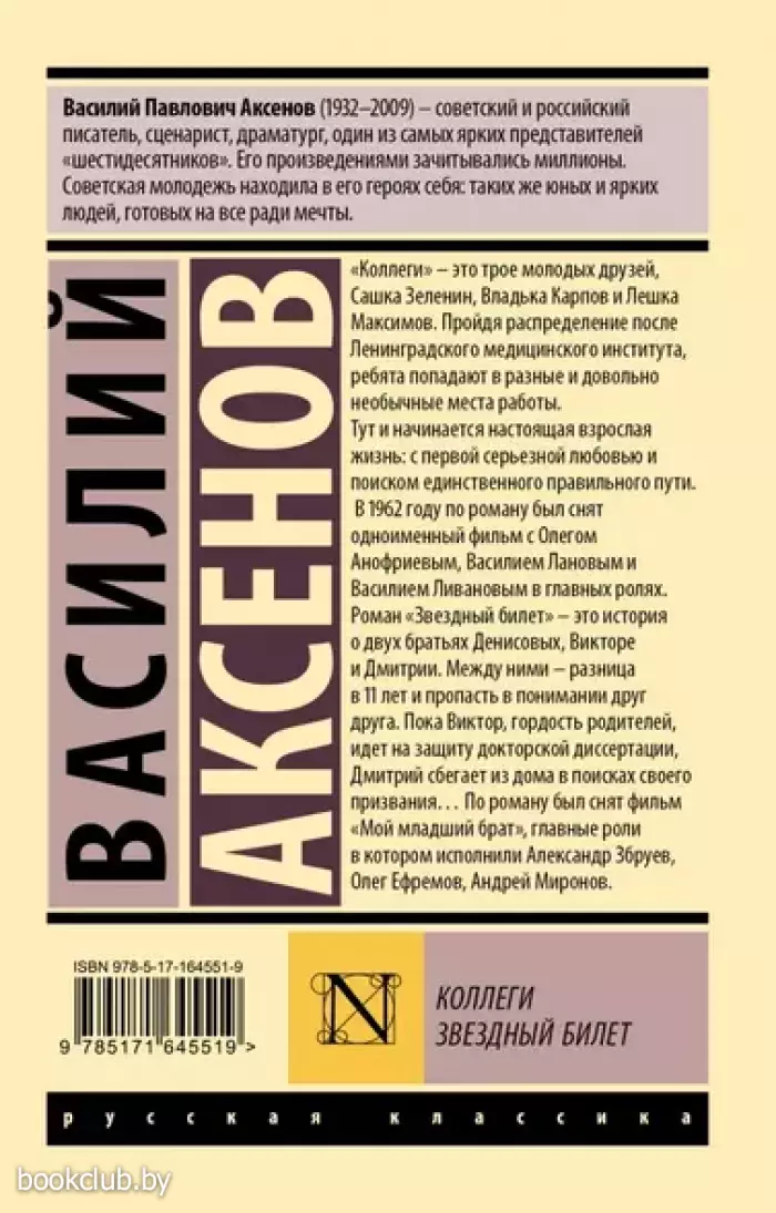 В данное издание вошли повесть «Коллеги» и роман «Звездный билет» — два произведения из раннего периода творчества писателя. Оба произведения были экранизированы практически сразу после публикации — в фильме «Коллеги» снялись Олег Анофриев, Василий Лановой и Василий Ливанов, а в «Моем младшем брате», адаптации «Звездного билета», главные роли исполнили Александр Збруев, Олег Ефремов и Андрей Миронов, а впервые на экране появился талантливый актер Олег Даль.