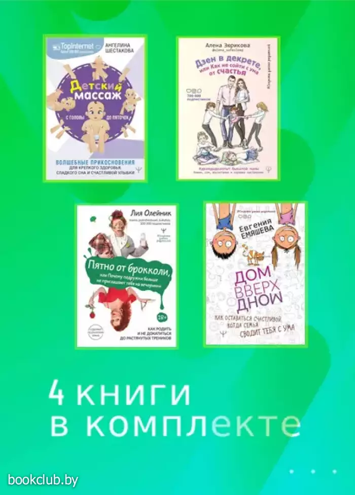 Комплект из 4 книг: Большой успокоин для мам: Детский массаж, Пятно от брокколи, ДомВверхДном, Дзен в декрете или как не сойти с ума от счастья