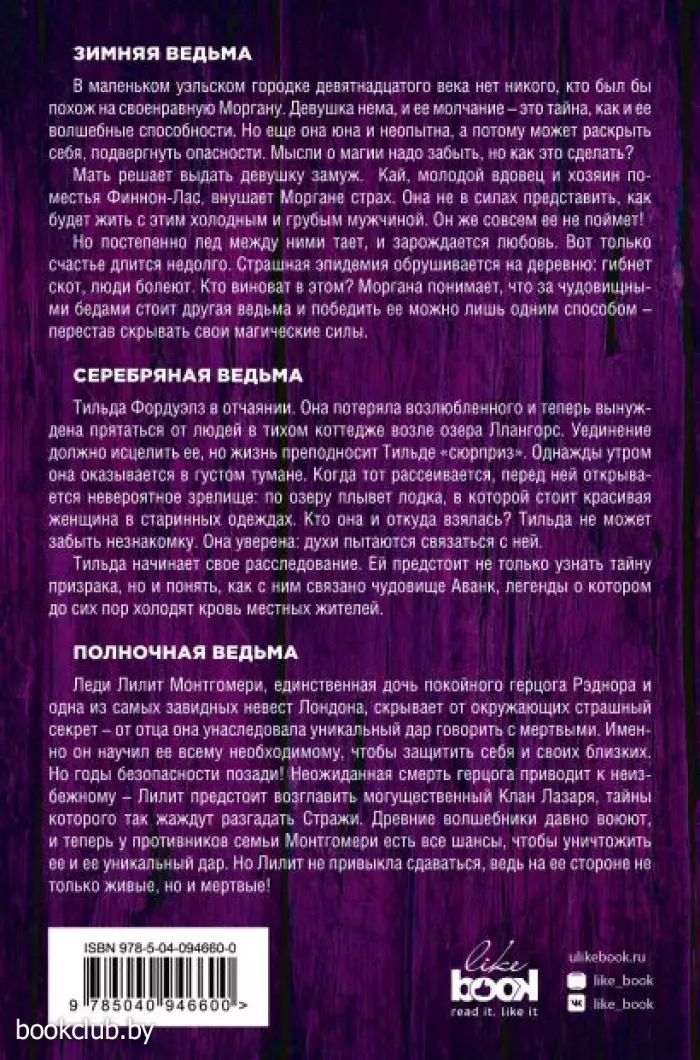 «Зимняя ведьма»В маленьком уэльском городке девятнадцатого века нет никого, кто был бы похож на своенравную Моргану. Девушка нема, и ее молчание – это тайна, как и ее волшебные способности. Но еще она юна и неопытна, а потому может раскрыть себя, подвергнуть опасности. Мысли о магии надо забыть, но как это сделать?Мать решает выдать девушку замуж. Кай, молодой вдовец и хозяин поместья Финнон-Лас, внушает Моргане страх. Она не в силах представить, как будет жить с этим холодным и грубым мужчиной. Он же совсем ее не поймет!Но постепенно лед между ними тает, и зарождается любовь. Вот только счастье длится недолго. Страшная эпидемия обрушивается на деревню: гибнет скот, люди болеют. Кто виноват в этом? Моргана понимает, что за чудовищными бедами стоит другая ведьма, и победить ее можно лишь одним способом – перестав скрывать свои магические силы.
