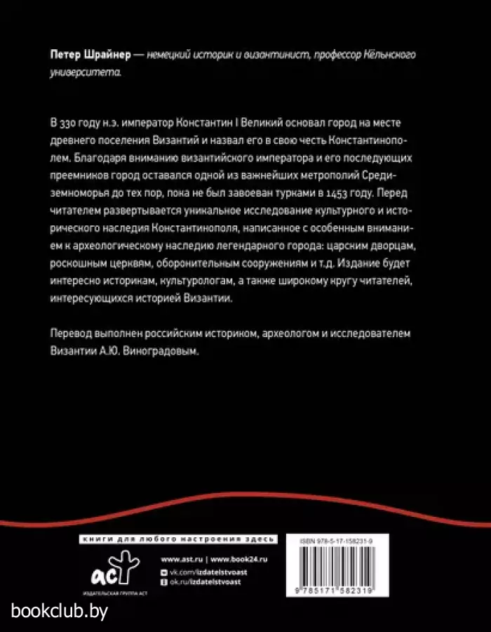 В 330 году н.э. император Константин I Великий основал город на месте древнего поселения Византий и назвал его в свою честь Константинополем. Благодаря вниманию византийского императора и его последующих преемников город оставался одной из важнейших метрополий Средиземноморья до тех пор, пока не был завоеван турками в 1453 году. Перед читателем развертывается уникальное исследование культурного и исторического наследия Константинополя, написанное с особенным вниманием к его археологическому наследию легендарного города: царским дворцам, роскошным церквям, оборонительным сооружениям и т.д. Издание будет интересно историкам, культурологам, а также широкому кругу читателей, интересующихся историей Византии. Перед выполнен российским историком, археологом и исследователем Византии А.Ю. Виноградовым.