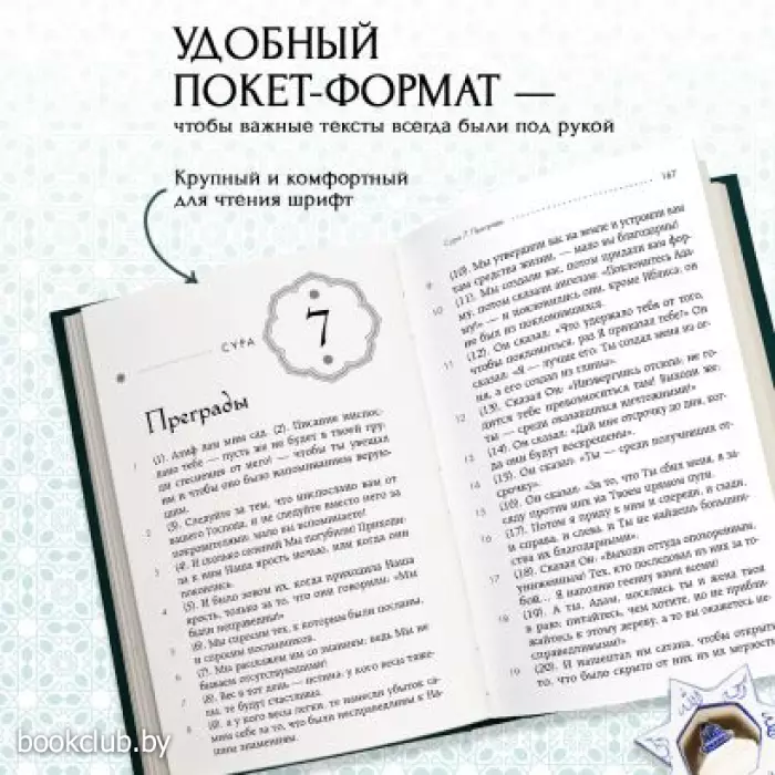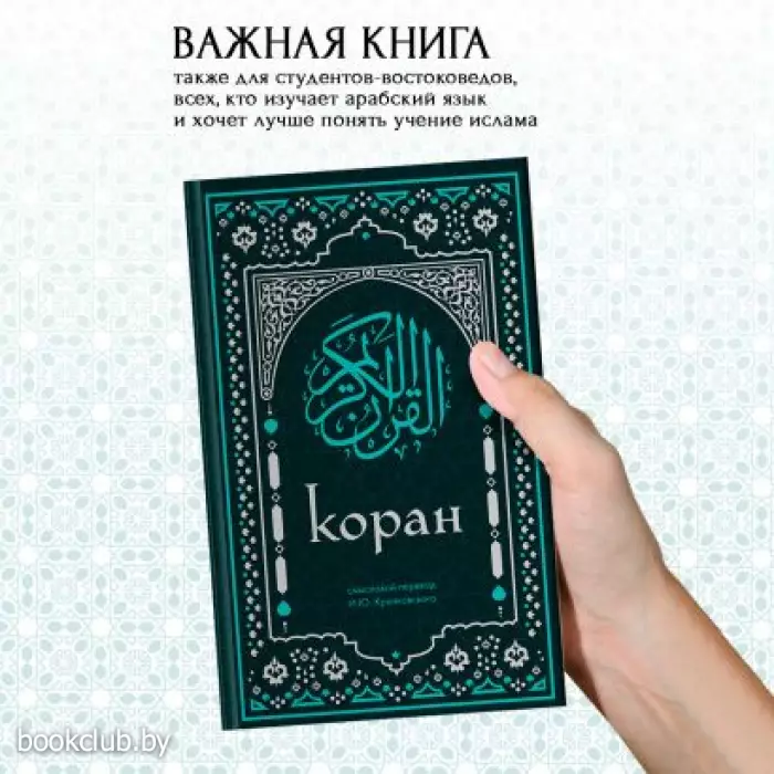 Самый известный смысловой перевод Корана на русский язык академика Игнатия Крачковского. Выдержал более 40 изданий, общий тираж которых превышает 2 миллиона экземпляров. Считается академическим и одним из самых авторитетных среди русскоговорящих мусульман. Великолепное оформление переплета серебряной фольгой, удобный, компактный формат. Будет полезен также студентам-востоковедам и изучающим арабский язык.