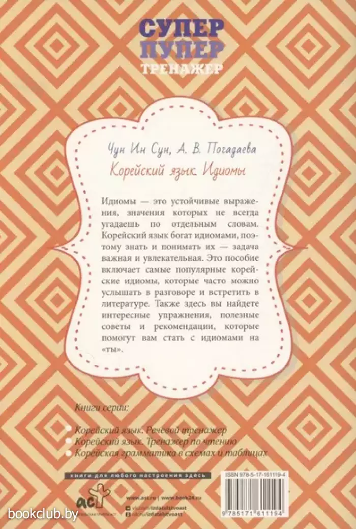Идиомы — это устойчивые выражения, значения которых не всегда угадаешь по отдельным словам. Корейский язык богат идиомами, поэтому знать и понимать их — задача важная и увлекательная. Это пособие включает самые популярные корейские идиомы, которые часто можно услышать в разговоре и встретить в литературе. Также здесь вы найдете интересные упражнения, полезные советы и рекомендации, которые помогут вам стать с идиомами на "ты".