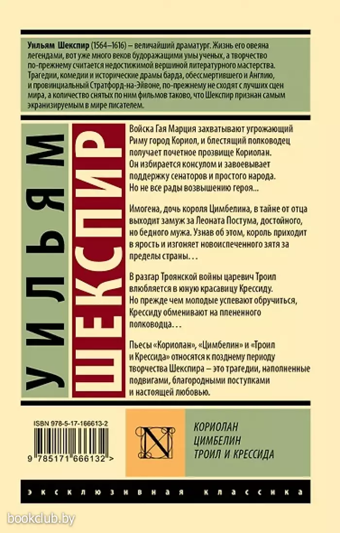 Войска Гая Марция захватывают угрожающий Риму город Кориол, и блестящий полководец получает почетное прозвище Кориолан. Он избирается консулом и завоевывает поддержку сенаторов и простого народа. Но не все рады возвышению героя... Имогена, дочь короля Цимбелина, в тайне от отца выходит замуж за Леоната Постума, достойного, но бедного мужа. Узнав об этом, король приходит в ярость и изгоняет новоиспеченного зятя за пределы страны… В разгар Троянской войны царевич Троил влюбляется в юную красавицу Крессиду. Но прежде чем молодые успевают обручиться, Крессиду обменивают на плененного полководца… Пьесы «Кориолан», «Цимбелин» и «Троил и Крессида» относятся к позднему периоду творчества Шекспира — это трагедии, наполненные подвигами, благородными поступками и настоящей любовью.