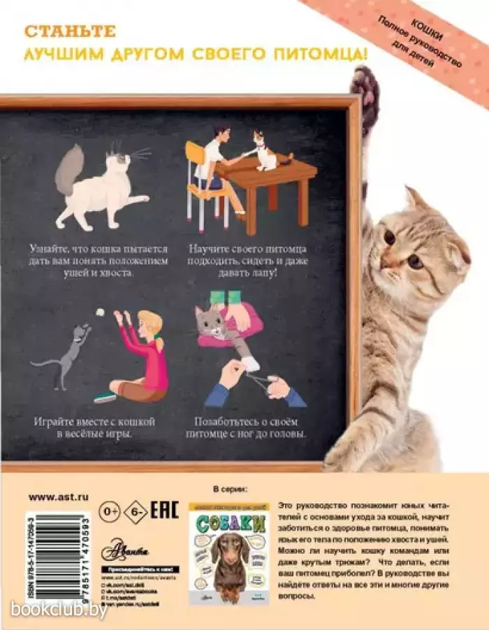 Это руководство в лёгкой и интересной форме познакомит юных читателей с основами ухода за кошкой, научит заботиться о здоровье и комфорте питомца, понимать язык его тела по положению хвоста и ушей. Можно ли научить кошку командам или даже крутым трюкам? Чем безопасно угостить любопытного питомца? Что делать, если ваш питомец приболел? В руководстве вы найдёте ответы на все эти и многие другие вопросы.