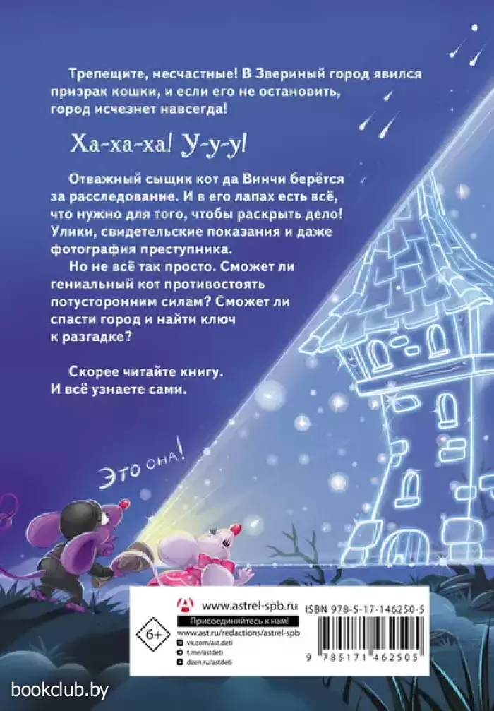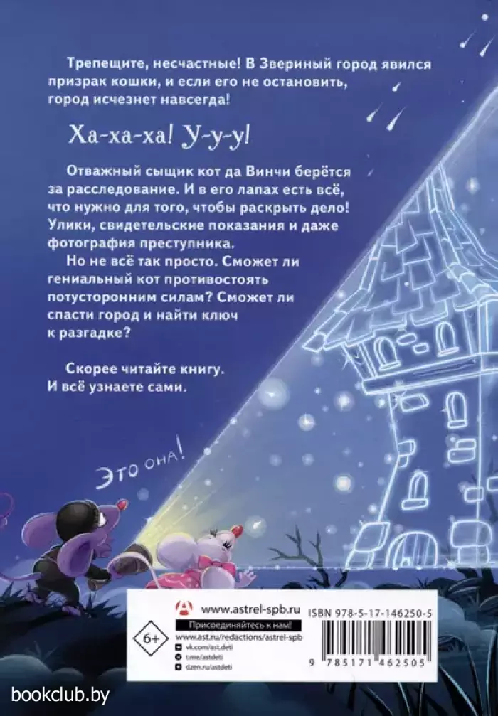 Вас ждут необычные приключения кота да Винчи и его друзей, встречи с новыми героями и таинственные исчезновения. Проделки вредного фиолетового мышонка и пророчества Кусандры-саламандры, много волшебства и, конечно, гениальное расследование знаменитого рыжего кота с большим красным носом…