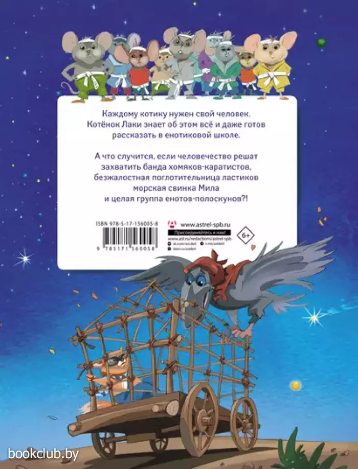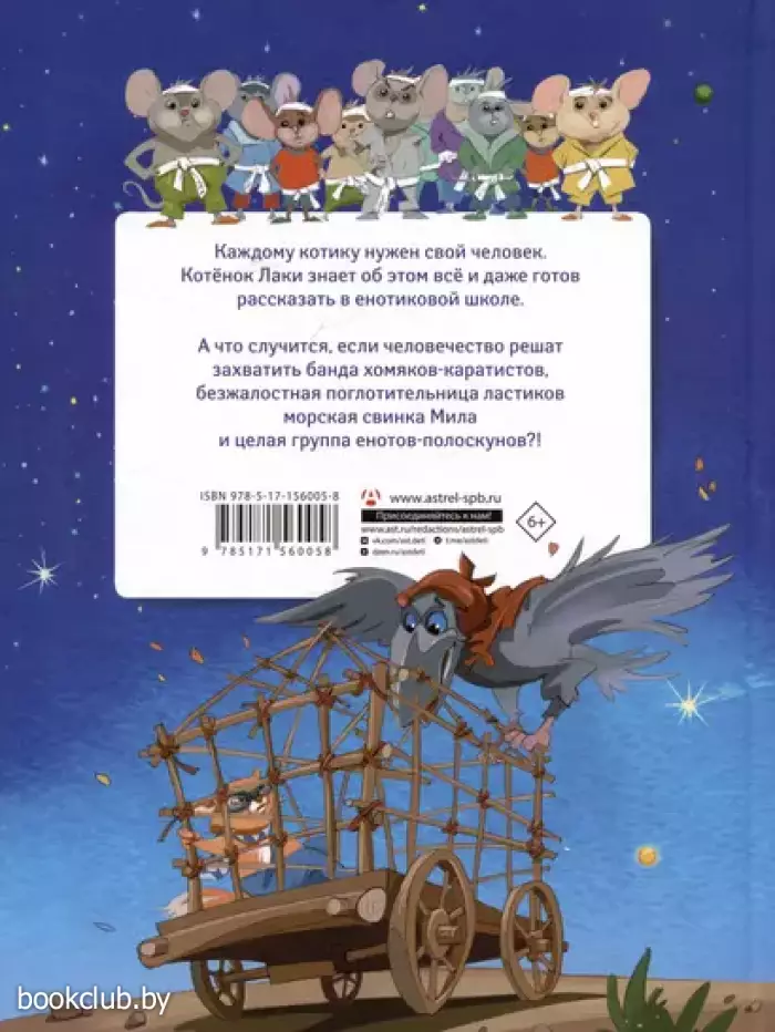 Каждому котику нужен свой человек. Котёнок Лаки знает об этом всё и даже готов рассказать в енотиковой школе. А что случится, если человечество решат захватить банда хомяков-каратистов, безжалостная поглотительница ластиков морская свинка Мила и целая группа енотов-полоскунов?!