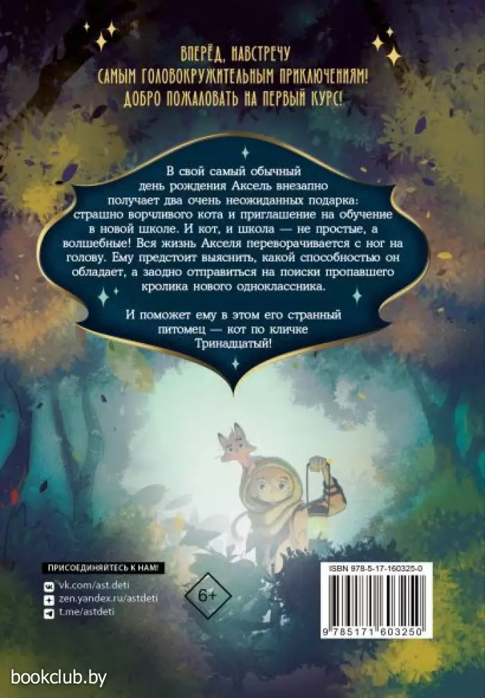 В свой самый обычный день рождения Аксель внезапно получает два очень неожиданных подарка: страшно ворчливого кота и приглашение на обучение в новой школе. И кот, и школа – не простые, а волшебные! Вся жизнь Акселя переворачивается с ног на голову. Ему предстоит выяснить, какой способностью он обладает, а заодно отправиться на поиски пропавшего кролика нового одноклассника. И поможет ему в этом его странный питомец – кот по кличке Тринадцатый!