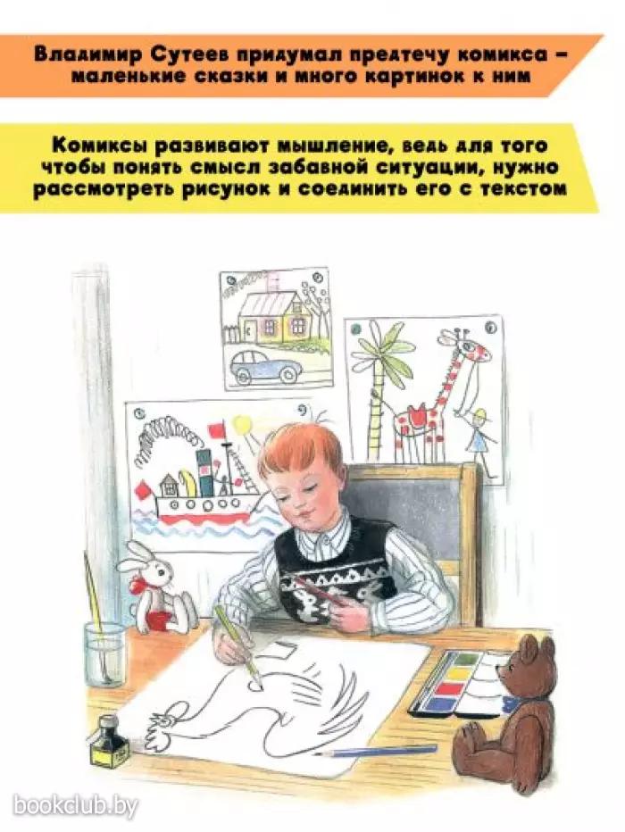 Эти и другие истории вы прочитаете в нашей книжке. Придумал их знаменитый художник-сказочник Владимир Сутеев. Каждая сказка не только увлекательное чтение, но и урок дружбы, доброты и мудрости.