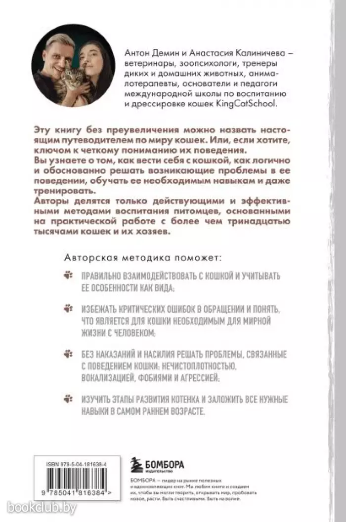 Авторы — опытные ветеринары, зоопсихологи и тренеры диких и домашних животных. Они являются основателями и педагогами международной школы по воспитанию и дрессировке кошек KingCatSchool. Они предлагают уникальный путеводитель по миру кошек, который поможет вам лучше понять их поведение. В нем вы найдете полезные советы о том, как правильно общаться с кошкой и решать возникающие проблемы. Авторы делятся своими эффективными методами воспитания кошек, основанными на многолетнем опыте работы с тысячами питомцев и их хозяев.