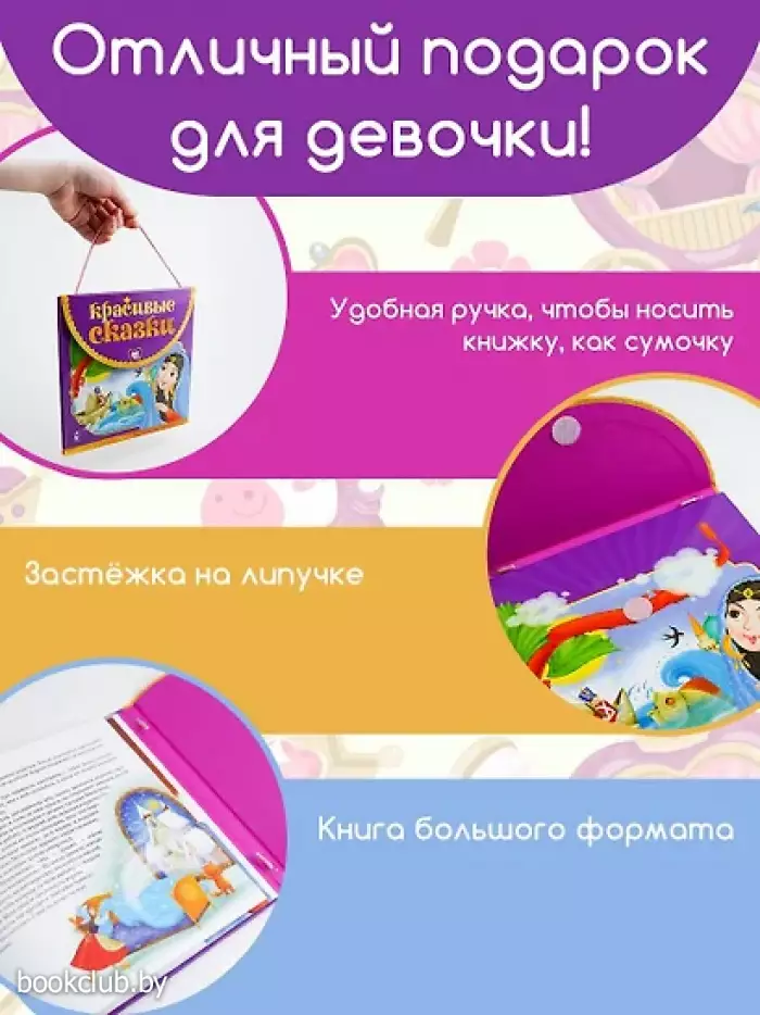 В этой книжке-сумочке собраны самые красивые сказки, которые обязательно понравятся юной читательнице и её подружкам. Они встретятся с находчивым Котом в сапогах и весёлыми Бременскими музыкантами, красавицей Снегурочкой, храбрым оловянным солдатиком и другими героями, научатся быть добрыми, умными и смелыми.