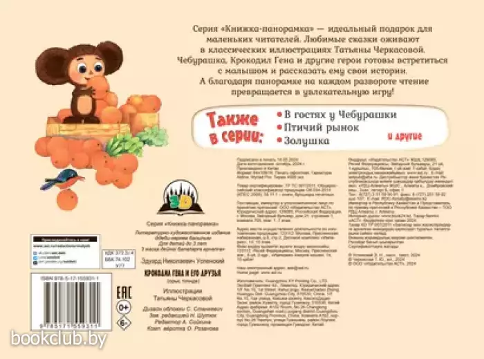 Серия "Книжка-панорамка" — идеальный подарок для маленьких читателей! Любимые сказки оживают в классических иллюстрациях Татьяны Черкасовой. Чебурашка, Крокодил Гена и другие герои готовы встретиться с малышом и рассказать ему свои истории.