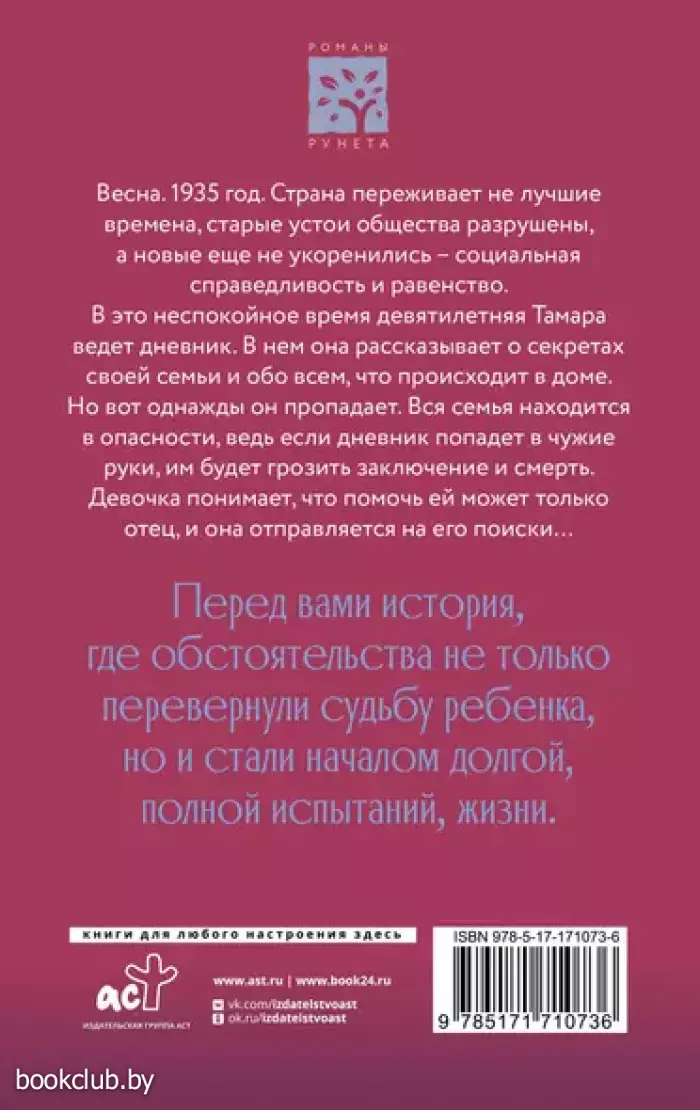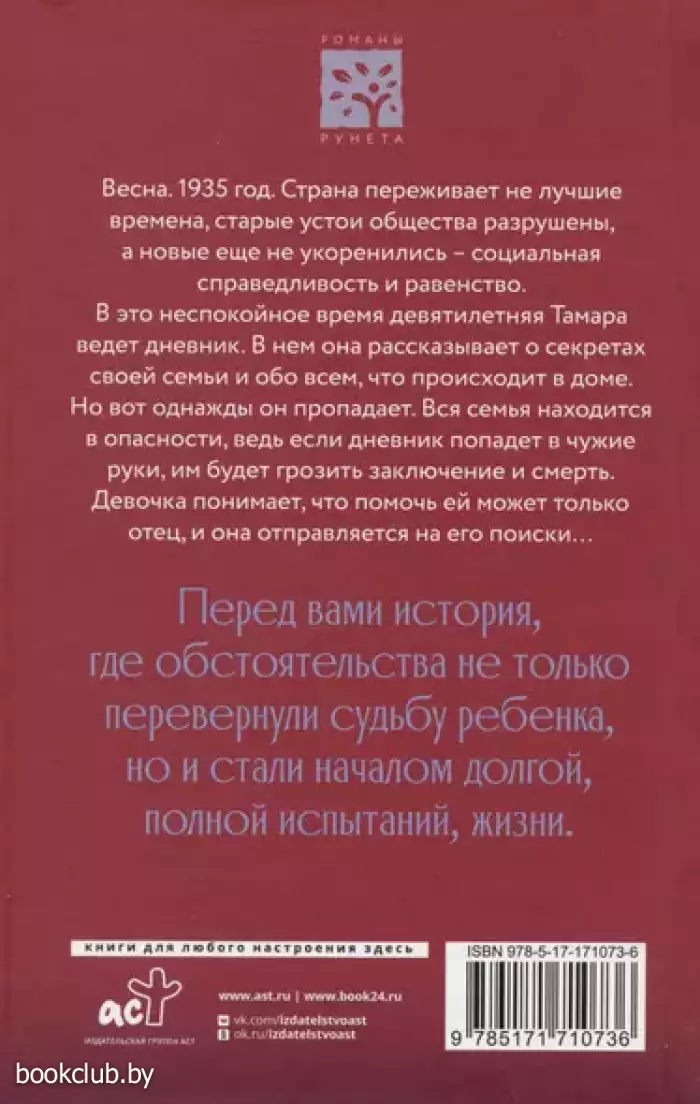 В это неспокойное время девятилетняя Тамара ведет дневник. В нем она рассказывает о секретах своей семьи и обо всем, что происходит в доме. Но вот однажды он пропадает. Вся семья находится в опасности, ведь если дневник попадет в чужие руки, им будет грозить заключение и смерть. Девочка понимает, что помочь ей может только отец, и она отправляется на его поиски…