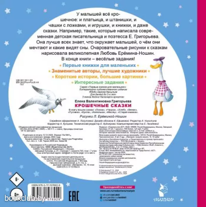У малышей всё крошечное: и платьица, и штанишки, и чашки с ложками, и игрушки, и книжки, и даже сказки. Например, такие, которые написала современная детская писательница и поэтесса Е. Григорьева. Она лучше всех знает, что окружает малышей, о чём они мечтают и какие видят сны. Очаровательные рисунки к сказкам нарисовала великолепная Любовь Ерёмина-Ношин.