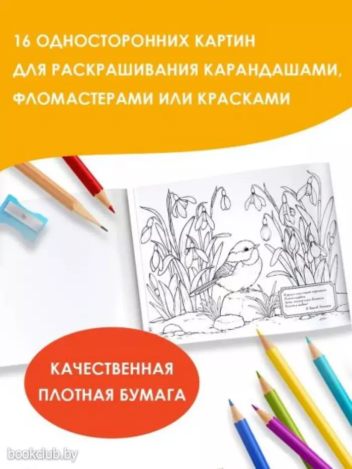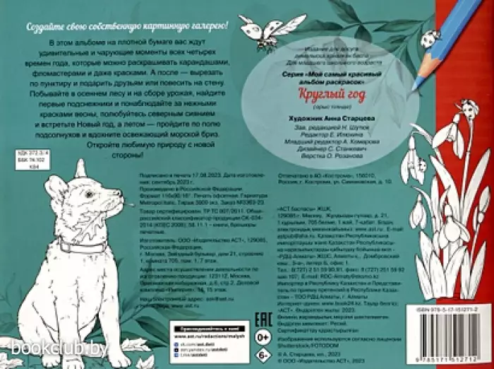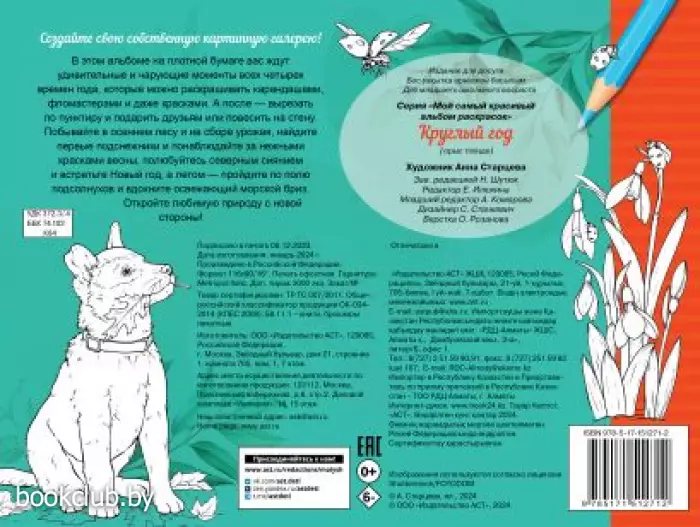 В этом альбоме на плотной бумаге вас ждут удивительные и чарующие моменты всех четырех времен года, которые можно раскрашивать карандашами, фломастерами и даже красками.
