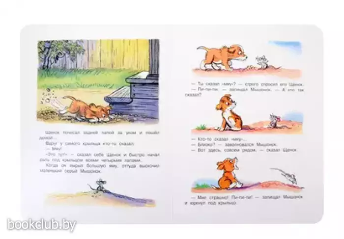 Откройте эту книгу и помогите щенку найти того, кто сказал "мяу!".